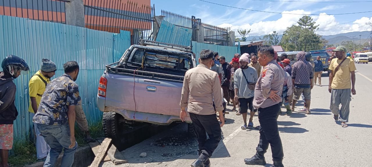 Polres Jayawijaya melalui Jajaran Polsek Wamena Kota yang menerima Laporan masyarakat segera mendatangi Tempat Kejadian Perkara (TKP) Laka Tunggal tersebut dan melakukan penanganan terhadap pengendara R4 Mitsubisi, mengamankan TKP Laka serta mengurai arus lalu lintas agar tidak terjadi kemacetan dan menganggu pengguna jalan lainnya.