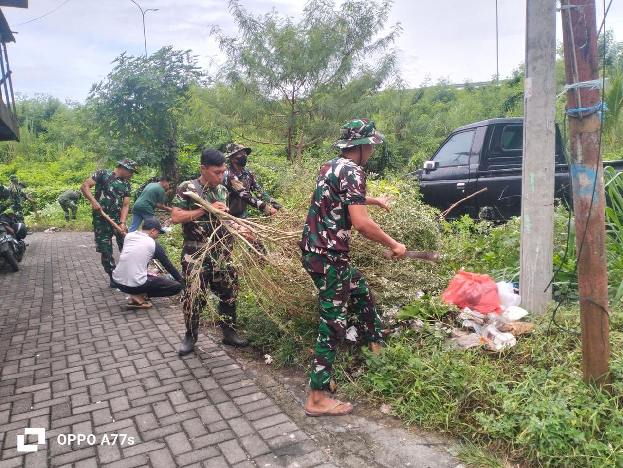 Kegiatan karya bhakti kali ini diawali dengan apel bersama dihadiri oleh berbagai pihak, antara lain, Lurah Pateten Satu Ibu Christie, Anggota Koramil 1310-01/Bitung, Anggota LPM Pateten Satu, Anggota Komcad Bitung, Perangkat Kelurahan Pateten Satu dan Masyarakat Kel. Pateten Satu, dengan sasaran selokan dan kiri/kanan jalan.