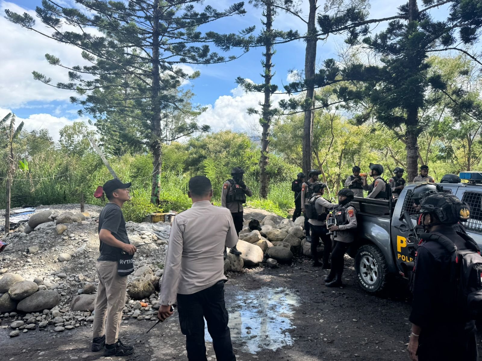Kegiatan patroli tersebut dipimpin oleh IPDA Zaenal Efendi, S.H., selaku Wakil Padal Regu I, bersama personel Dalmas Polres Jayawijaya dan personel BKO Brimob Yon D Kompi IV Wamena.