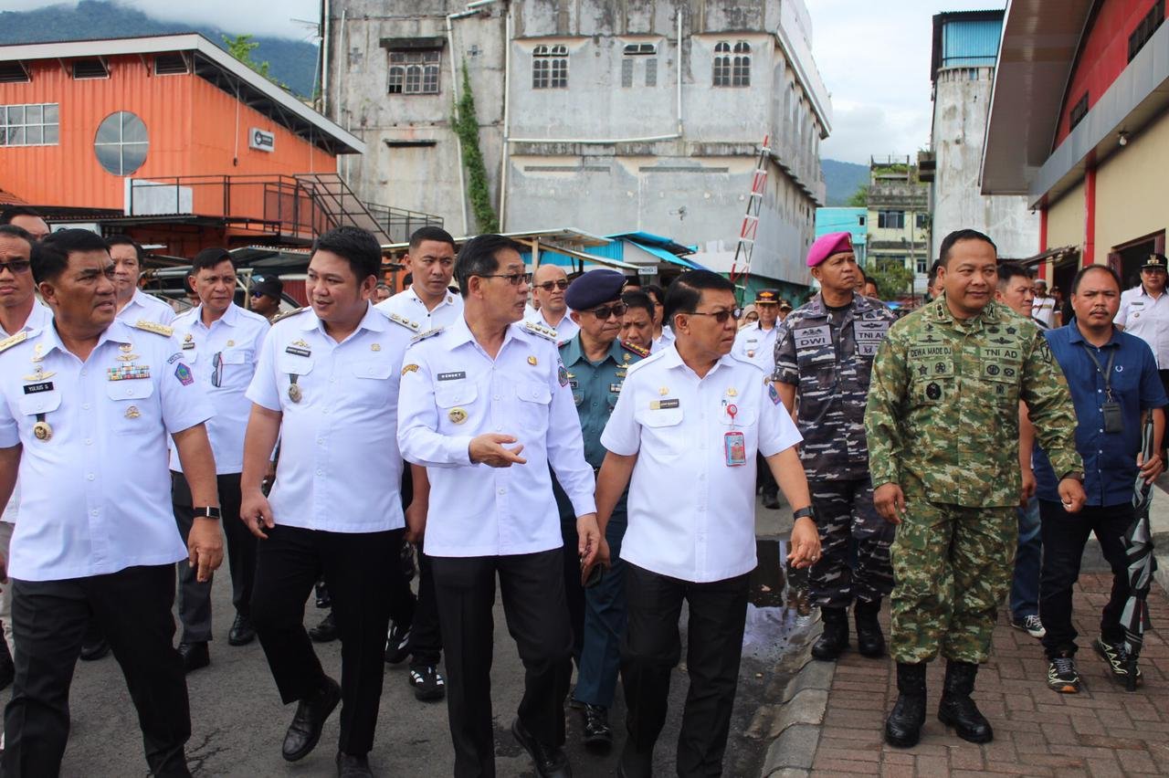 Bitung – Sebagai bentuk kepedulian pemerintah terhadap kebutuhan masyarakat, khususnya dalam menjaga stabilitas harga dan ketersediaan bahan pokok menjelang hari besar keagamaan. Komandan Kodim 1310/Bitung bersama Walikota dan Wakil Walikota Bitung serta unsur Forum Koordinasi Pimpinan Daerah (Forkopimda) Kota Bitung mendampingi Gubernur Sulawesi Utara, meninjau penjualan langsung komoditas pangan pokok dalam gelar pasar murah yang dilaksanakan di Pusat Pertokoan Kota Bitung Kel. Bitung Timur, Kec. Maesa, Kota Bitung, Rabu (25/02/2026).