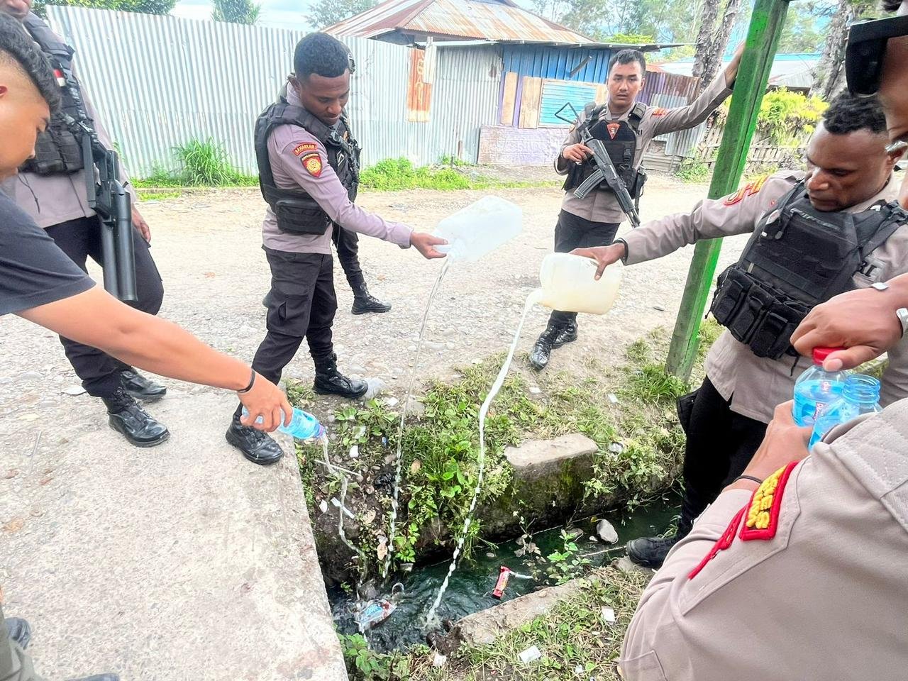 Dalam razia miras di Jalan Hola Lokasi III Wamena, petugas mengamankan satu jerigen minuman lokal jenis ballo, satu jerigen miras jenis Cap Tikus, serta tiga botol miras kemasan tanpa pemilik. Selain itu, satu botol miras jenis Cap Tikus juga diamankan dari seorang warga di Jalan Ambon Wamena. Seluruh barang bukti langsung dimusnahkan di lokasi sesuai ketentuan.