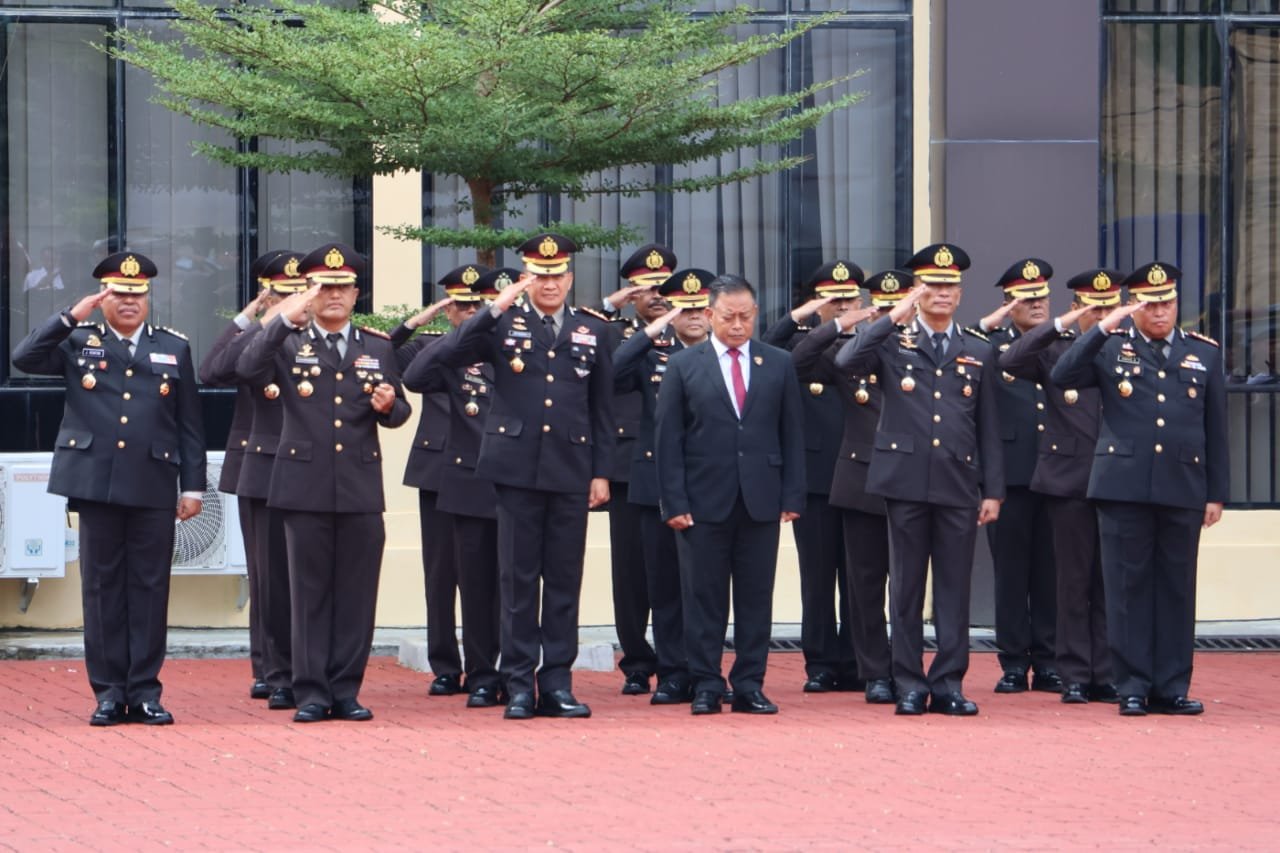 Kapolda Papua Irjen Pol. Patrige R. Renwarin, S.H., M.Si. bertindak sebagai Inspektur Upacara, dan turut dihadiri oleh Irwasda Polda Papua Kombes Pol. Jermias Rontini, S.I.K., M.Si., para Pejabat Utama Polda Papua, serta seluruh personel Pamen, Pama, Bintara, dan ASN Polda Papua.
