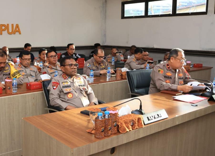 Kegiatan yang diikuti secara virtual dari Aula Cenderawasih Polda Papua ini turut dihadiri Kapolda Papua Irjen Pol. Patrige R. Renwarin, S.H., M.Si., Wakapolda Papua Brigjen Pol. Dr. Faizal Ramdhani, S.Sos., S.I.K., M.H., Irwasda Polda Papua Kombes Pol. Jermias Rontini, S.I.K., M.Si., serta Pejabat Utama Polda Papua.
