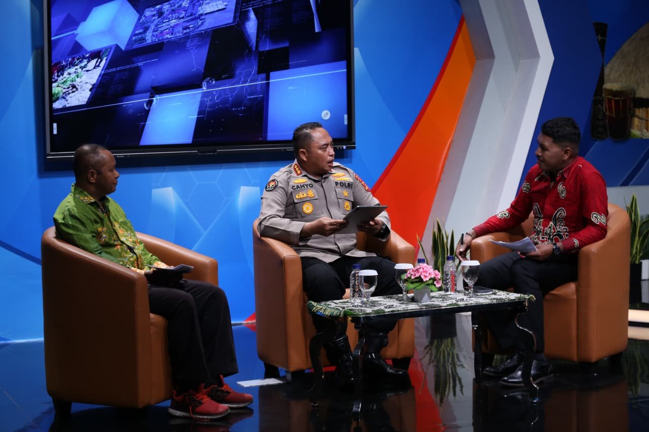 Papua – Polda Papua melalui Bidang Humas memaparkan capaian dan pendekatan humanis Operasi Rasaka Cartenz 2025 dalam program Dialog Interaktif Papua 60 Menit yang disiarkan langsung dari Studio LPP TVRI Papua, Jumat (21/11/2025).