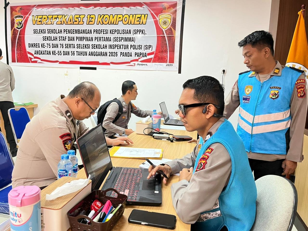 Secara keseluruhan kegiatan verifikasi penilaian 13 komponen SIP Angkatan 55 dan 56 T.A. 2026 Polda Papua berlangsung aman, tertib, dan lancar. Polda Papua berharap para peserta terus menunjukkan dedikasi dan sikap profesional hingga tahapan akhir seleksi.(rd)