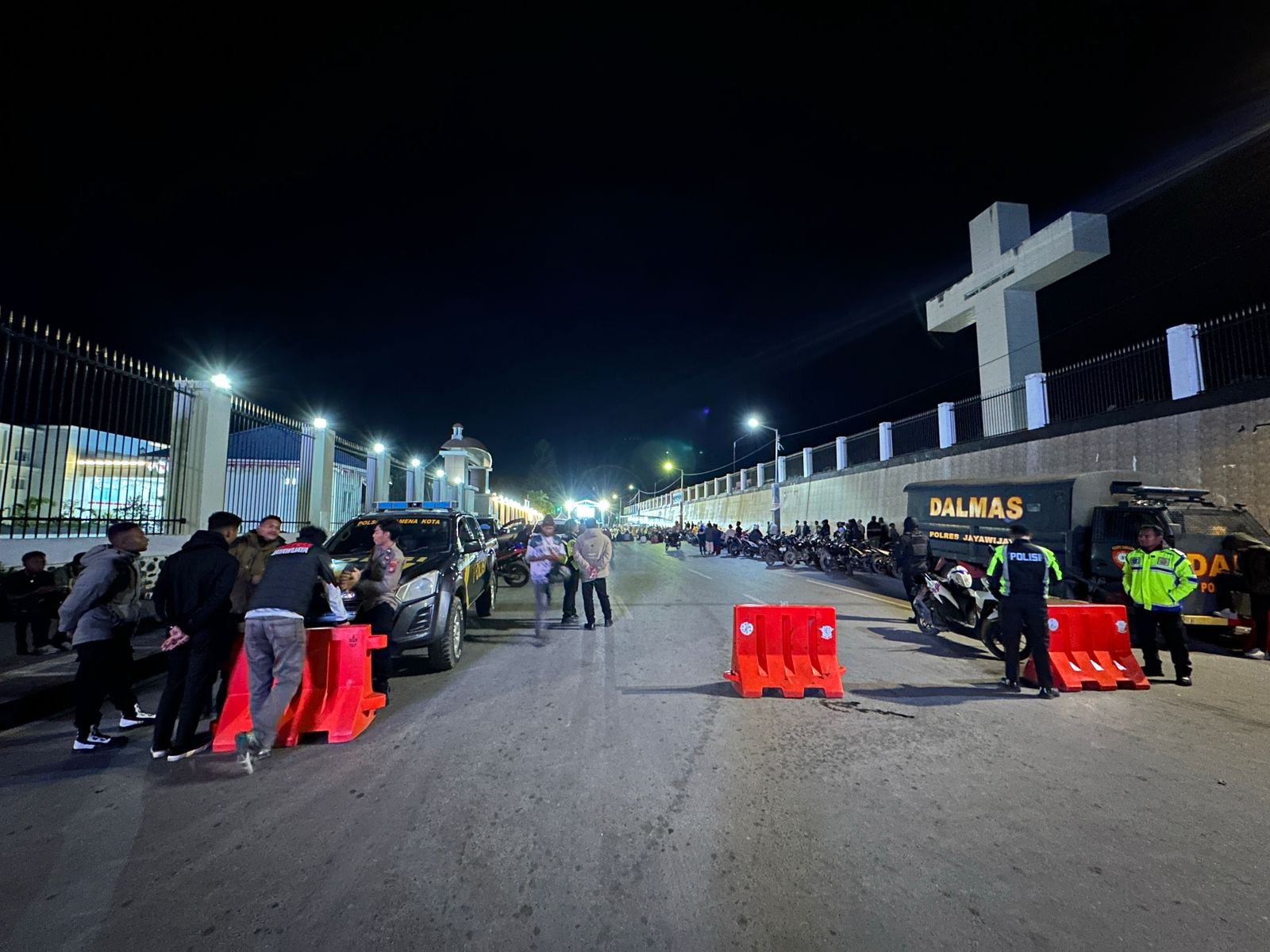 Pengamanan dilakukan untuk memastikan seluruh rangkaian ibadah berjalan dengan aman, tertib, dan lancar. Personel Polres Jayawijaya disiagakan di sejumlah titik strategis di sekitar lokasi kegiatan, mulai dari jalur masuk, area parkir, hingga lokasi utama pelaksanaan ibadah.
