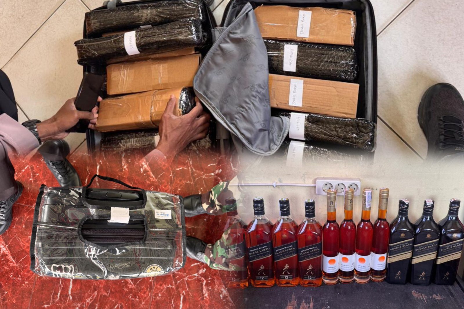 Kemudian saat pesawat mendarat, petugas melakukan pemeriksaan dan menemukan satu koper berisi minuman beralkohol. Koper tersebut langsung diperiksa melalui X-Ray 2, kemudian diamankan ke Kantor Polsek Bandara.