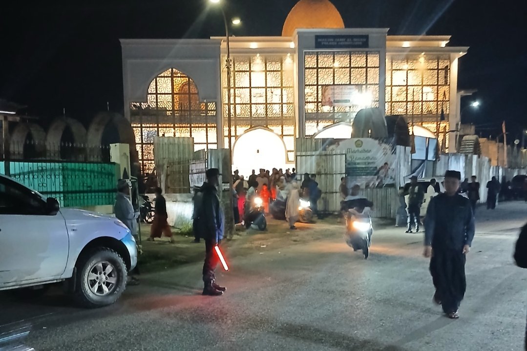 Jayawijaya – Polres Jayawijaya melaksanakan pengamanan Sholat Tarawih di Masjid Al-Ihsan Polres Jayawijaya pada Selasa (24/2) pukul 19.00 WIT sebagai bentuk peran aktif Polri dalam menjaga keamanan dan kenyamanan umat Muslim selama bulan suci Ramadhan.