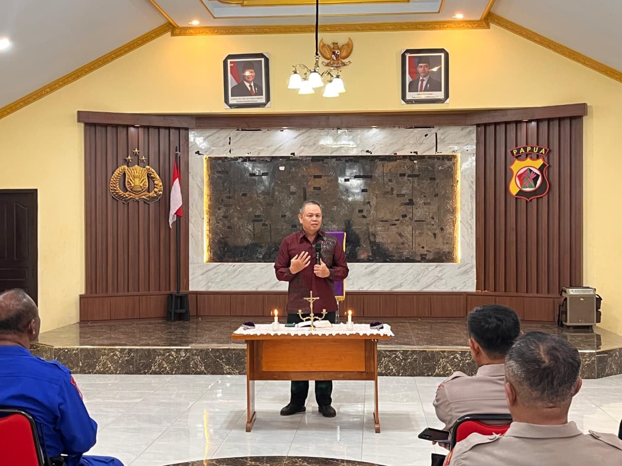 Kapolres Merauke menegaskan pentingnya pembinaan rohani sebagai landasan moral dalam bertugas.
