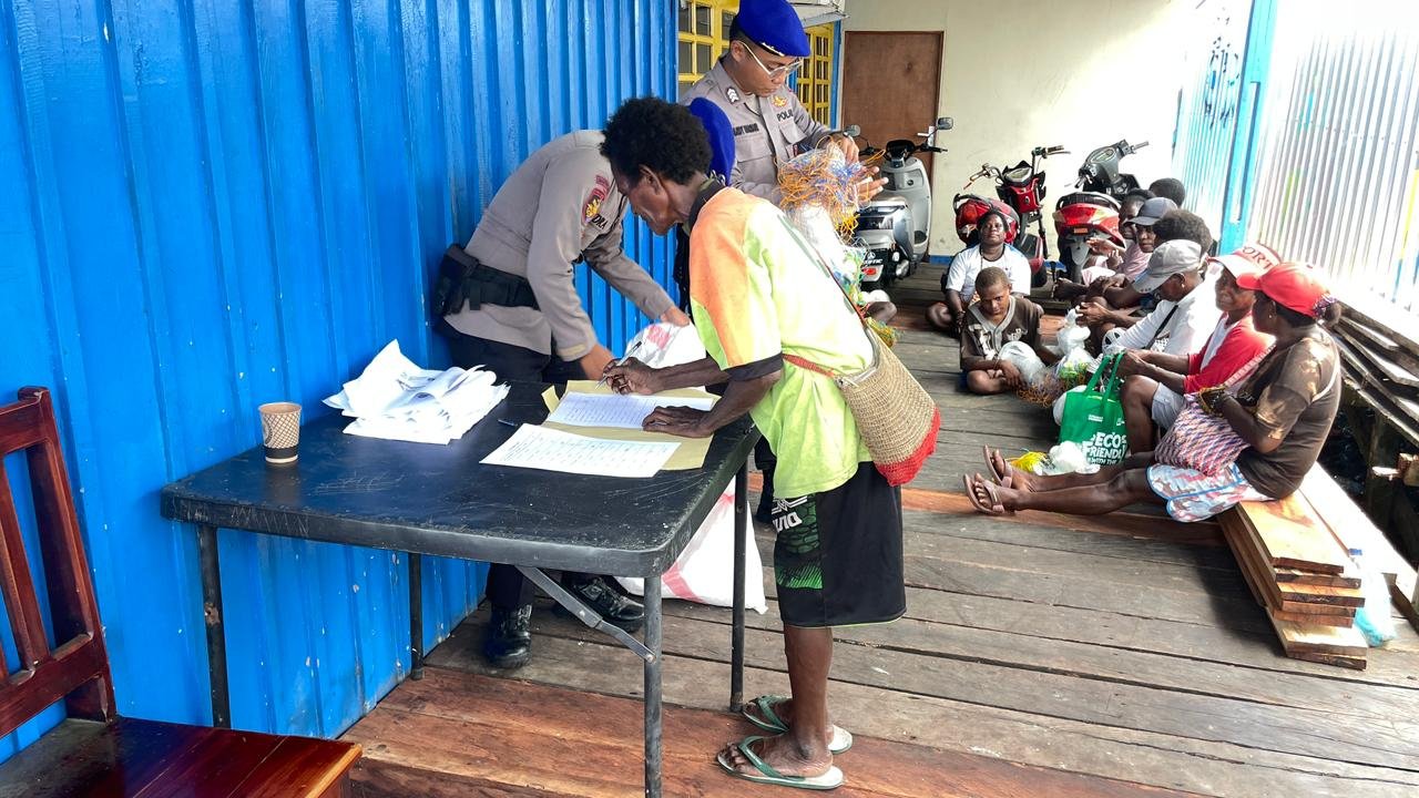 Papua – Kapolres Asmat AKBP Wahyu Basuki, S.I.K., melalui Kasat Polairud Ipda Rizeth Sion Paotonan, S.H., berikan bantuan jaring kepada kelompok nelayan di Kampung Yepem Dan Kampung Syuru, Bertempat Di Mako Sat Polairud Polres Asmat, Jumat (30/10/2025).