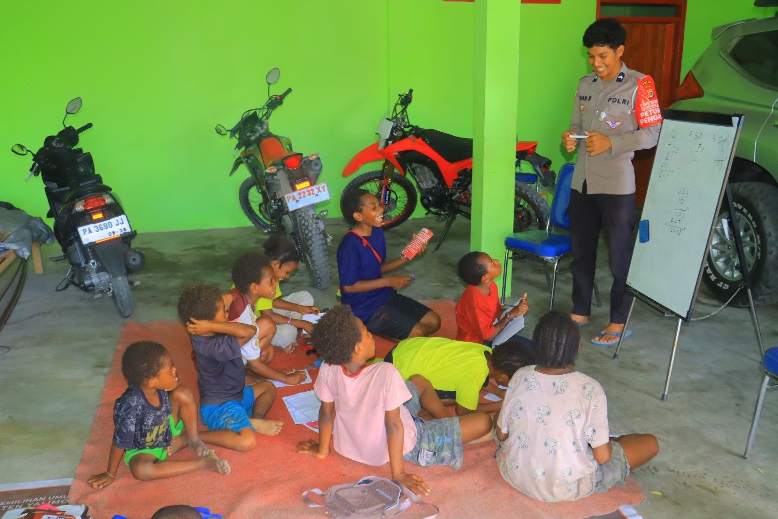 Dipimpin langsung oleh Kasubsatgas Si-IPAR, IPDA Maikel Matius Imburi. kegiatan ini menghadirkan suasana belajar yang penuh keakraban, anak-anak tampak antusias dan senang mengikuti sesi pembelajaran bersama dan dilanjutkan dengan makan bersama anggota kepolisian. Materi yang di Berikan yaitu Membaca, Menulis dan Berhitung.