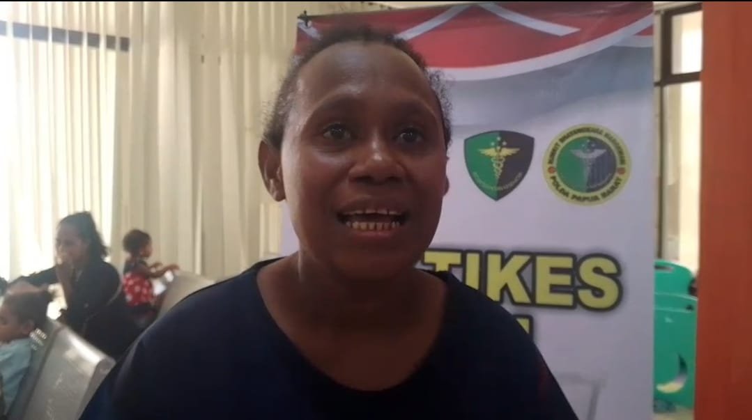 Manokwari – Seorang ibu asal Manokwari, Rosalina Kolin, datang bersama anaknya untuk mengikuti pemeriksaan stunting dalam program Bakti Kesehatan yang digelar oleh Polda Papua Barat, Senin (16/06/2025)