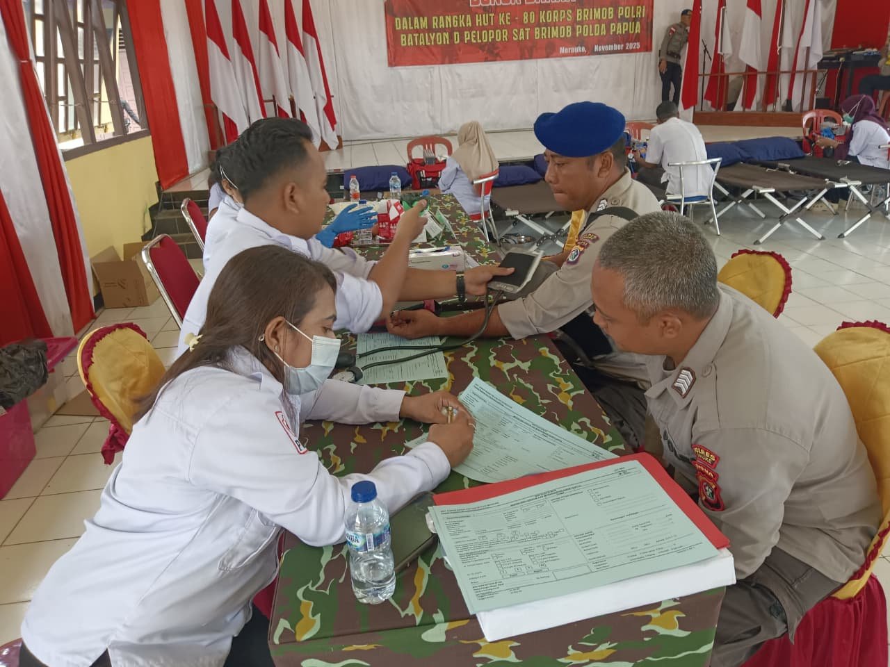 Papua – Dalam rangka memperingati Hari Ulang Tahun (HUT) ke-80 Korps Brimob Polri, Satuan Polisi Air dan Udara (Sat Polairud) Polres Merauke turut berpartisipasi dalam kegiatan donor darah yang diselenggarakan oleh Korps Brimob Polri Batalyon D Pelopor Polda Papua, bertempat di Mako Brimob Batalyon D Pelopor Merauke.