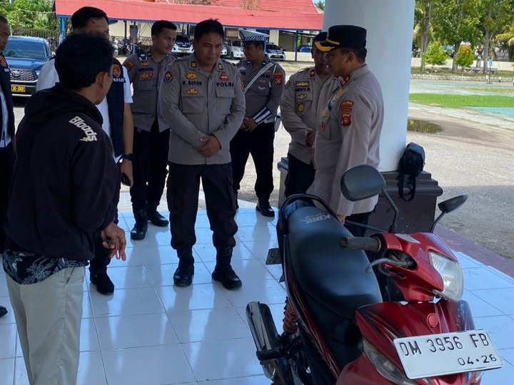 Popayato – Wujud kepedulian terhadap korban Kapolres Pohuwato AKBP H. Busroni, S.I.K., M.H,. menyerahkan 1 unit bantuan sepeda motor merk Yamaha Vega kepada Korban Tindak Pidana Premanisme Pemerasan dan Pembakaran yang terjadi di Dambalo Kecamatan Popayato, Rabu (28/5/2025).