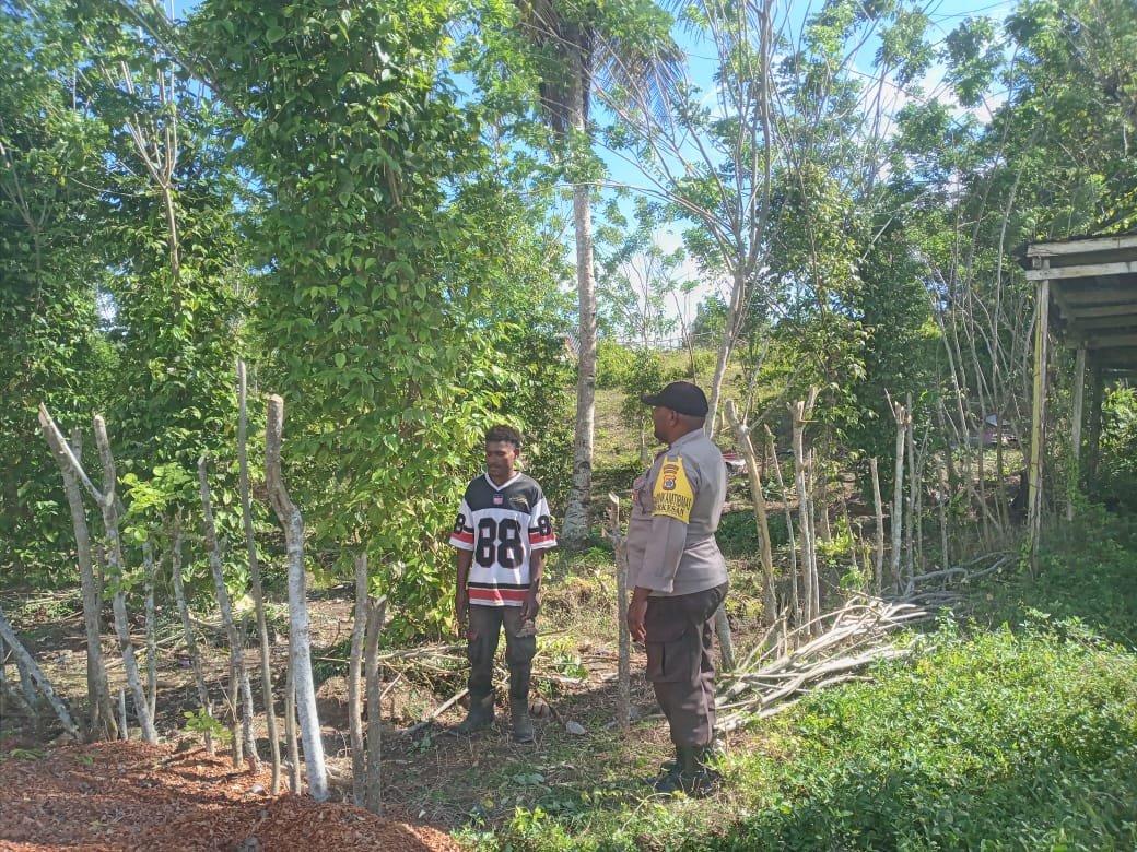 Dalam kegiatan tersebut, Aipda Willem menyambangi Toni Boseren, salah satu pemuda kampung yang sedang berkebun. Melalui pendekatan yang santai dan penuh keakraban, Aipda Willem menyampaikan pesan-pesan kamtibmas agar masyarakat senantiasa menjaga keamanan lingkungan serta menghindari praktik pembakaran lahan yang dapat merugikan banyak pihak.