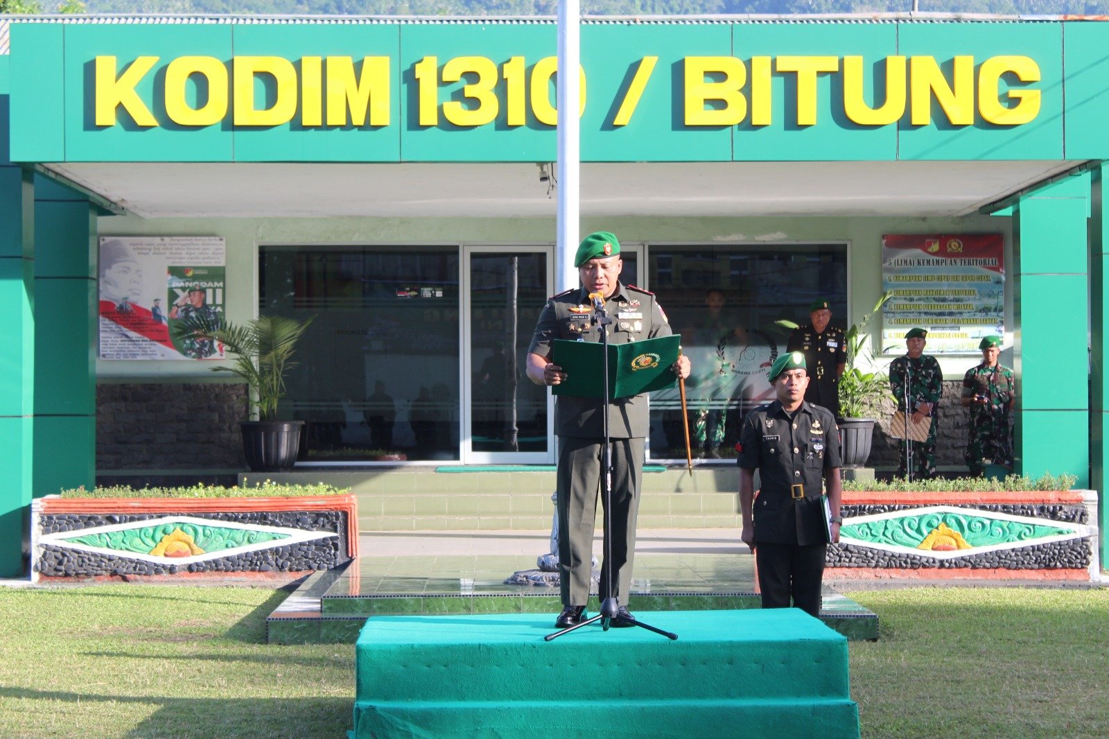 Komandan Kodim 1310/Bitung Letkol Inf Dewa Made DJ, bertindak selaku inspektur upacara dan membacakan amanat Panglima Besar Jenderal Soedirman dan Amanat Kepala Staf Angkatan Darat yang intinya menyampaikan bahwa Hari Juang TNI Angkatan Darat merupakan sebuah